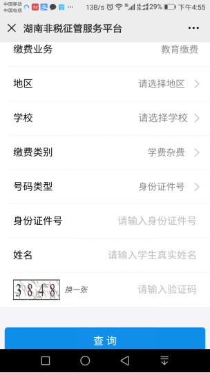 ③ 进入缴费查询登录界面,输入信息后点击“查询”