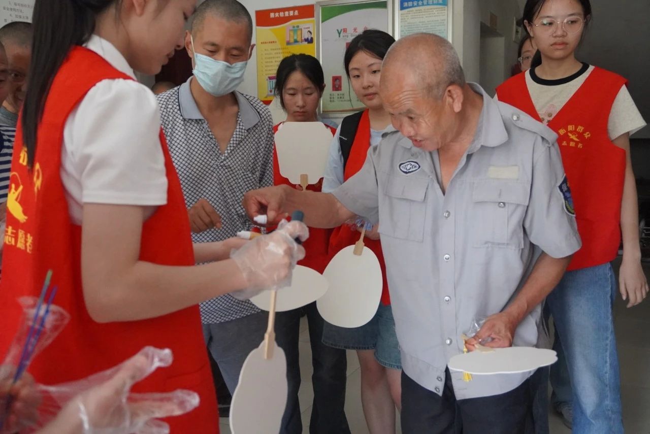 漆扇制作结束后,志愿者们陪伴老人聊天谈心,耐心倾听他们讲述过往的点点滴滴。随后,志愿者们分工协作,对敬老院的卫生环境进行了全面的打扫,整个敬老院焕然一新。