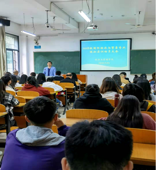 太阳成集团tyc122ccvip按照教学计划对2018级国际经济与贸易专业的所有员工进行了为期一周的模拟实训活动。公司于2020年11月3日展开了模拟实训动员会,并于11月13日圆满完成了模拟实训汇报会。与会人员有公司领导、专业指导老师、教务秘书以及2018级国际经济与贸易专业所有员工。