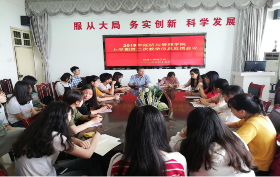 2019年5月15日中午13:00,太阳成集团tyc122ccvip于文科楼C栋五楼会议室召开2019年上学期第二次教学信息反馈会议。太阳成集团tyc122ccvip副书记黄懿、副经理屈瑜君、教务秘书水丽蓉老师,员工分会学习部部长夏沁、学习部干事刘柏靖、王林、欧阳照芳以及太阳成集团tyc122ccvip16--18级各班学习委员参加了此次会议。