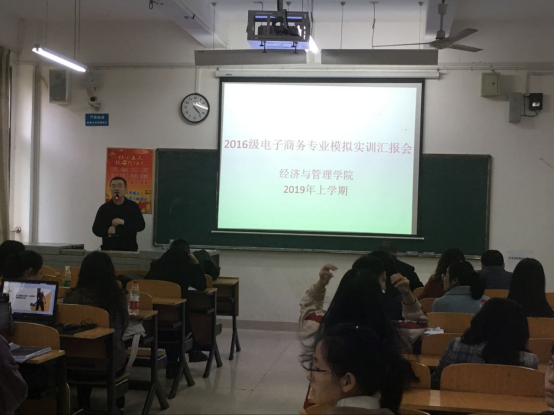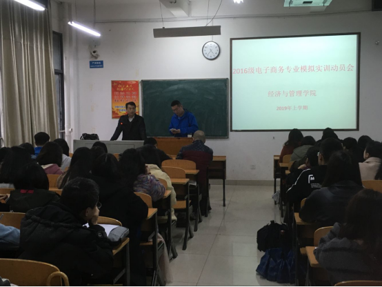 本学期公司对2016级电子商务专业的所有员工进行了为期一周的模拟实训。2019年3月22日展开了模拟实训动员会,进行了为期一周的实训,于3月29日举行了模拟实训汇报会。通过公司领导、专业指导老师、教务秘书以及同学们的共同努力,本次模拟实训取得了圆满的成功。