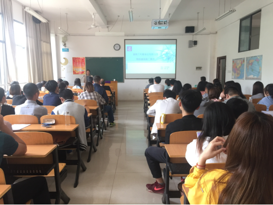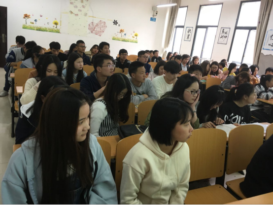 员工们和老师们正在认真听演讲