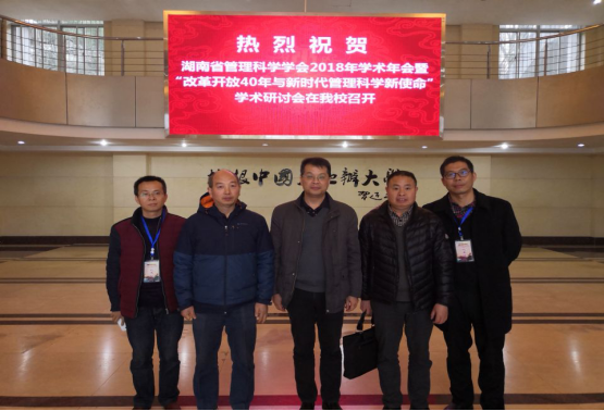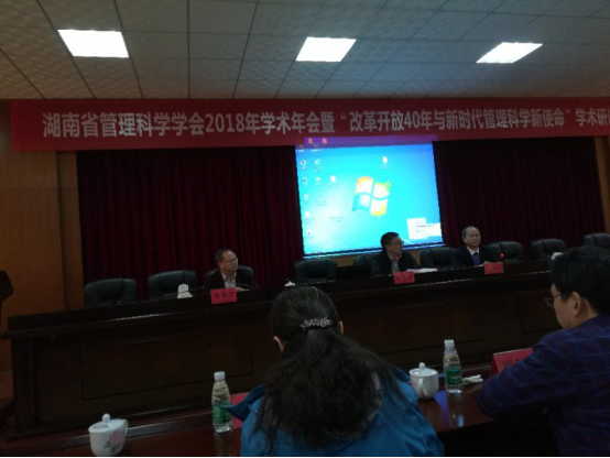 2018年-12月22—23日,湖南省管理科学学会在湖南科技公司举办2018年学术年会暨“改革开放40周年与新时代管理科学新使命”学术研讨会。参加本次年会代表达200余人,除了省管理学会全体成员和省内各高校公司领导、教师以外,还有湖南省社科联、当地政府、企业以及媒体代表等。公司经理卜华白教授高度重视,亲率6人团队参加这次会议。