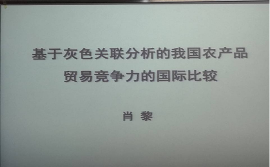 12月26日下午,公司副经理肖黎向太阳成集团tyc122ccvip全院员工作了一场题为《基于灰色关联分析的我国农产品贸易竞争力的国际比较》的学术报告。