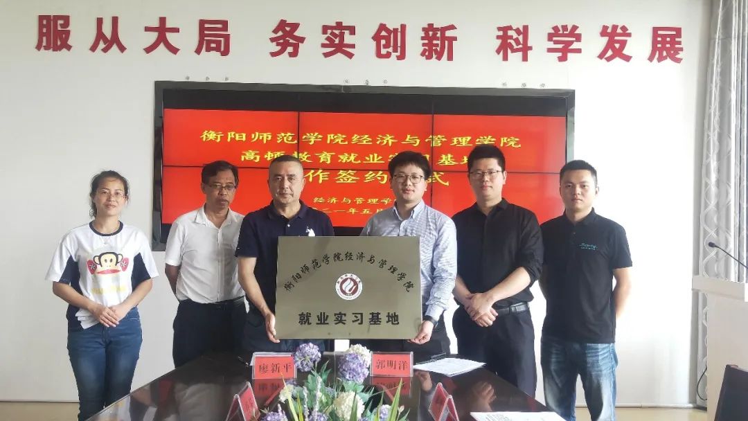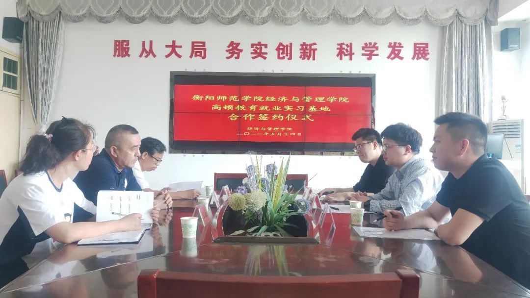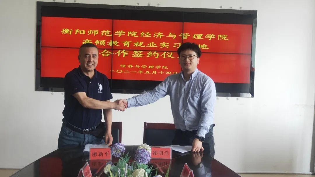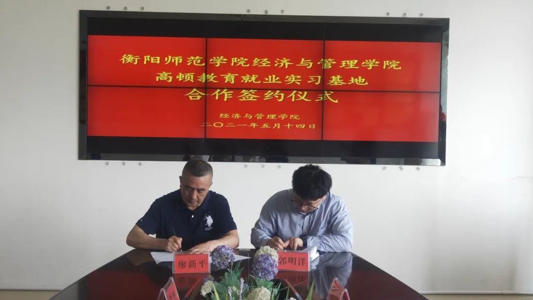 2021年5月14日上午,太阳成集团tyc122ccvip与高顿教育集团就业实习基地合作签约仪式隆重举行。经济管理公司党总支书记廖新平、经理肖黎、党总支副书记黄懿、高顿教育集团湖南区负责人郭明洋(长沙分校董事长)、湖南区行政人事负责人黄锋、衡阳区负责人周乾出席签约仪式。