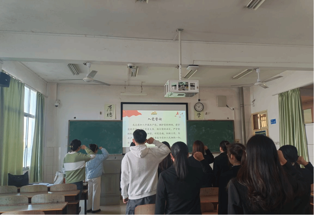 会议尾声,廖航瑜老师对本次大会作总结,勉励与会党员在以后的日常生活中继续以党员标准严格要求自己,积极发挥党员的先锋模范作用,时刻强信念,作表率,成为一名合格的共产党员。最后,全体党员重温入党誓词。