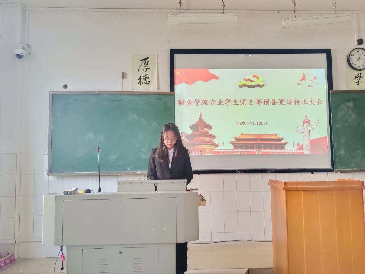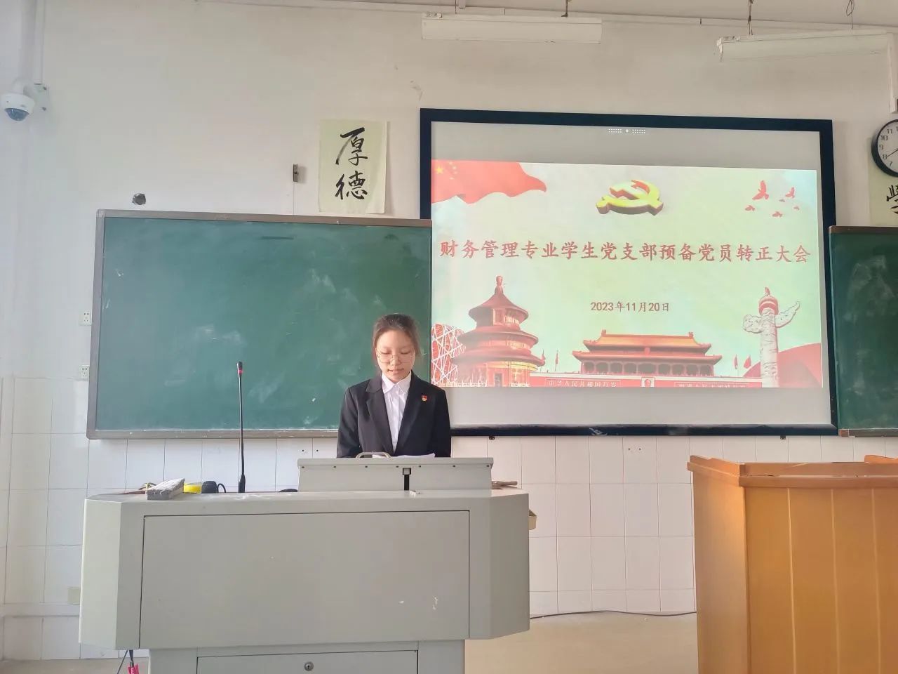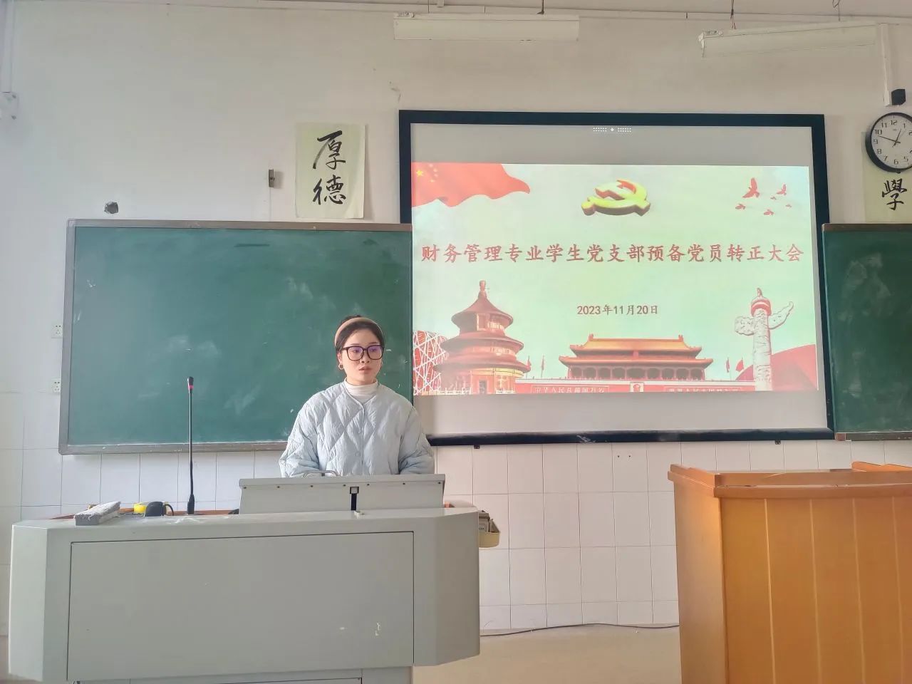 为扎实做好党员发展工作,发挥基层党组织的战斗堡垒作用,增强党员队伍的生机与活力,2023年11月20日下午,太阳成集团tyc122ccvip财务管理专业员工党支部于文科楼A302教室召开财务管理专业员工党支部预备党员转正大会,审议、讨论、表决刘新妍等4名预备党员的转正问题。