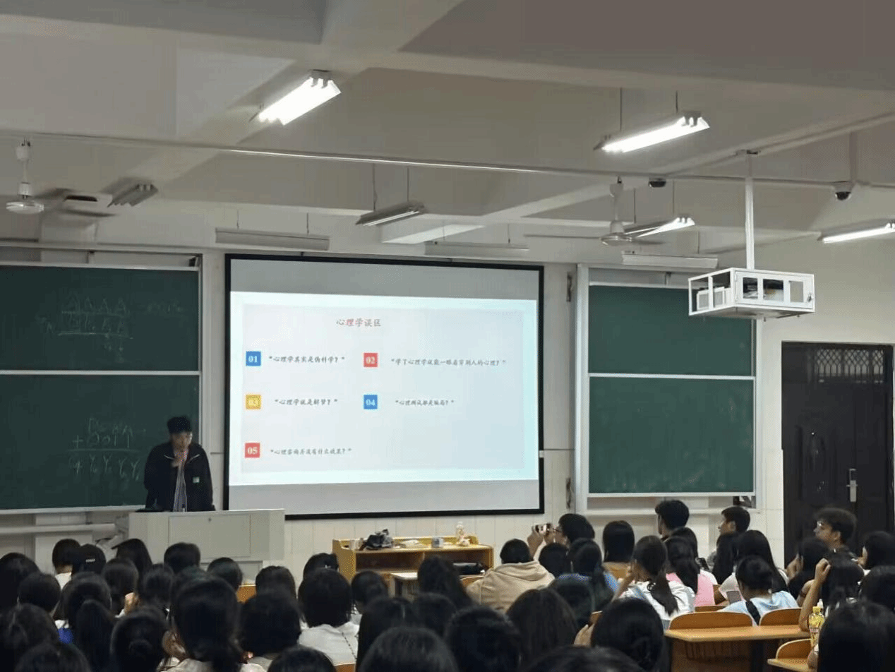主讲人向同学们列举出心理学误区,进一步阐释心理学是一门研究人类心理现象及活动的科学。紧接着,主讲人向在座同学介绍了心理学在生活中的具体表现,着重向大家科普高敏感是一种天赋,而非一种“症状”,希望在座的同学切忌高敏感特性而产生心理困扰。在专业的心理知识宣讲之余,主讲人还穿插了许多有趣的综艺片段,设置心理小游戏,帮助同学们更好地理解心理知识,活跃现场气氛。