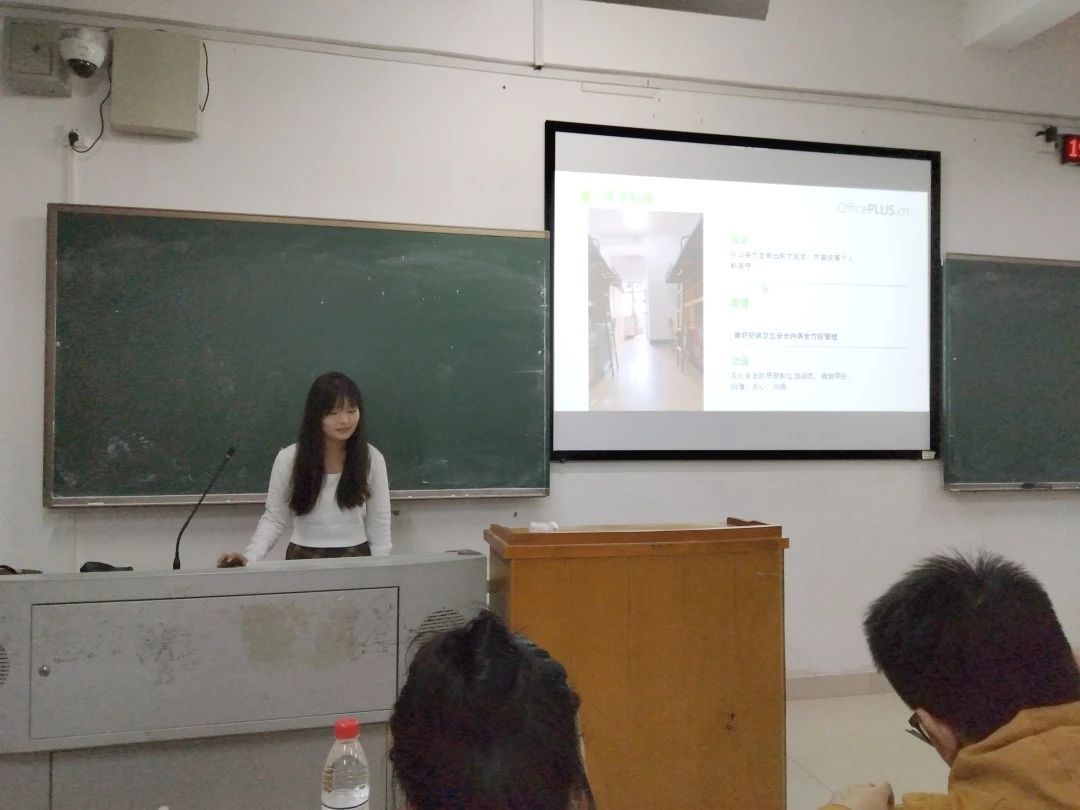 活动最后,依次进行了点评,生活部代表杨灿和文娱部代表印诗语都肯定了各寝室长的付出并赞赏了他们的奉献精神。