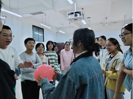 在主持人致开场白词后,游戏环节也紧锣密鼓的展开。首先进行的是“串名字”。同学们依次进行自我介绍接龙,活跃开场气氛的同时能够破冰消除陌生感。随后进行了“歌曲朗诵”、“终极密码”等环节。活动趣味性、互动性十足,现场气氛其乐融融,一片欢声笑语。