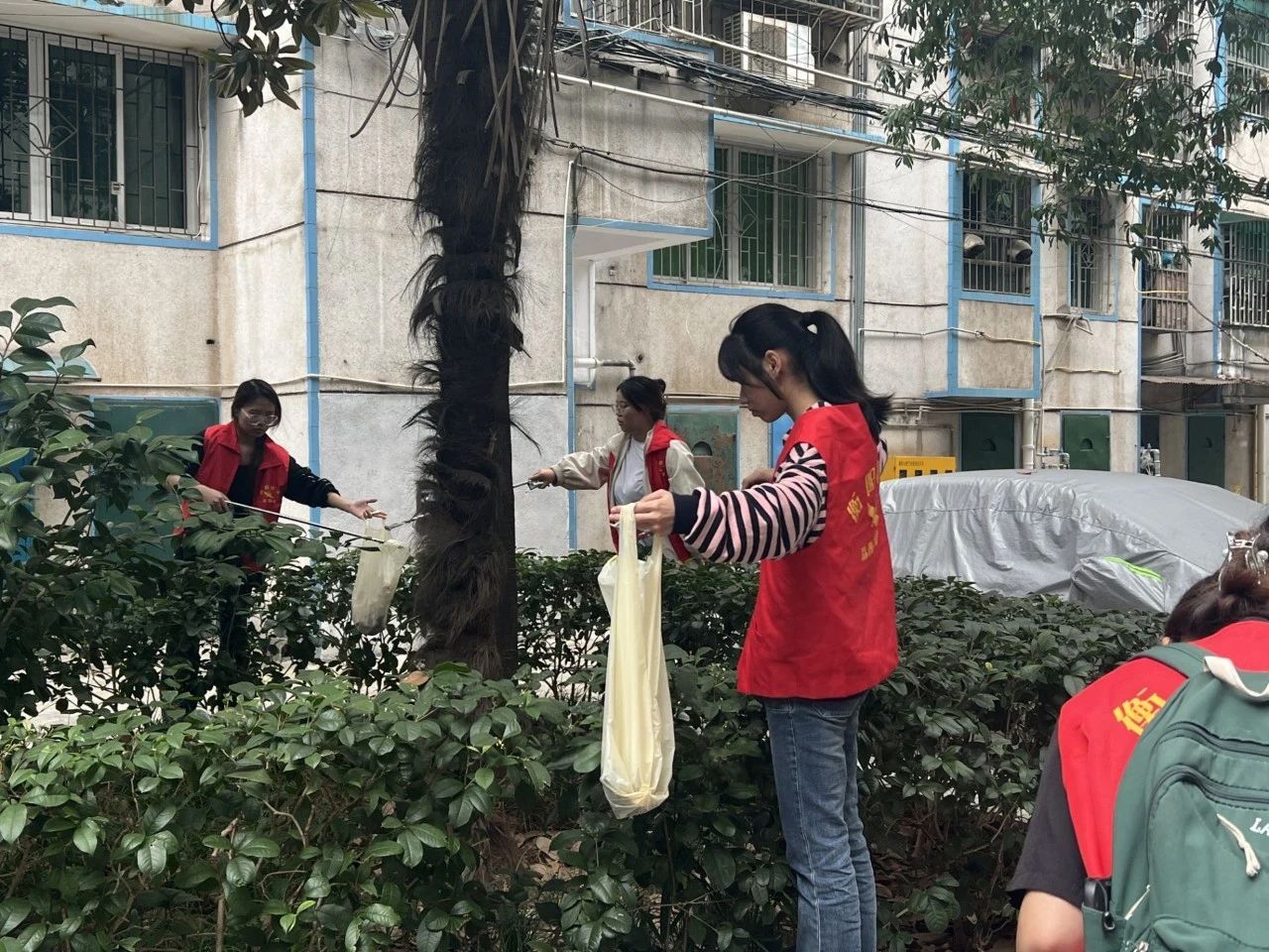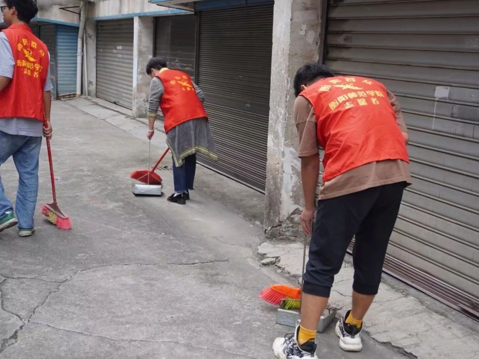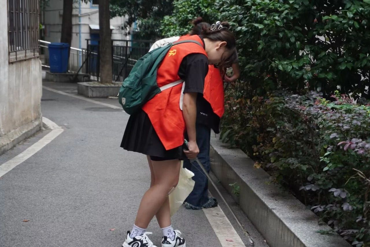 负责人叮嘱完注意事项后,志愿者们带着卫生工具分别前往事先安排好的区域进行卫生打扫。有的志愿者负责马路两旁垃圾的清理,他们一部分用扫帚认真地将路边的落叶清理干净,另一部分拿着垃圾夹仔细地夹起那些不易被扫走的垃圾;有的志愿者负责友爱里社区内的卫生清洁;还有的志愿者负责花坛等地方的清洁,他们带着垃圾夹仔仔细细的将花坛中的烟头、纸巾和苹果核拾起,不放过任何细小的地方。