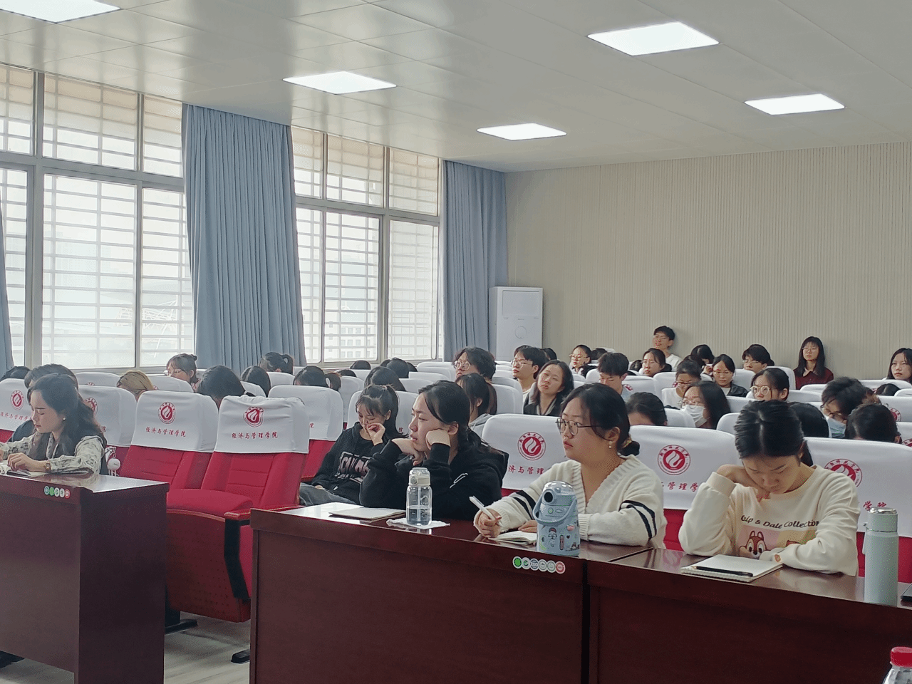 黄智慧老师为同学们详细讲解了此次讲座的主要内容和具体流程安排。同时还强调对考公有想法的同学要及早规划,充分利用在校时间,提高专业水平和实践能力,为备考公务员打下基石。