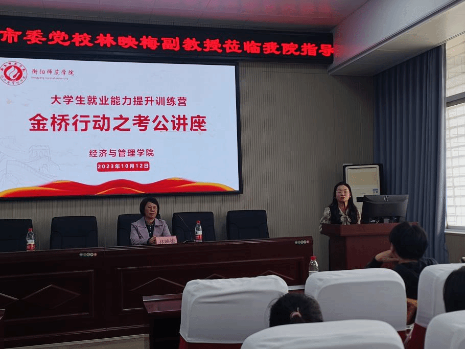 为精准有效开展员工就业指导与服务工作,帮助员工了解公务员招考政策及备考策略,进一步提升员工就业质量,10月12日上午10:00,公司在文C六楼会议室开展了“金桥行动之考公讲座”,本次讲座特邀衡阳市委党校林映梅副教授莅临公司指导。本次讲座由20级辅导员黄智慧主持,党总支副书记周思敏和公司2020级、2021级员工代表共计70余人参与。