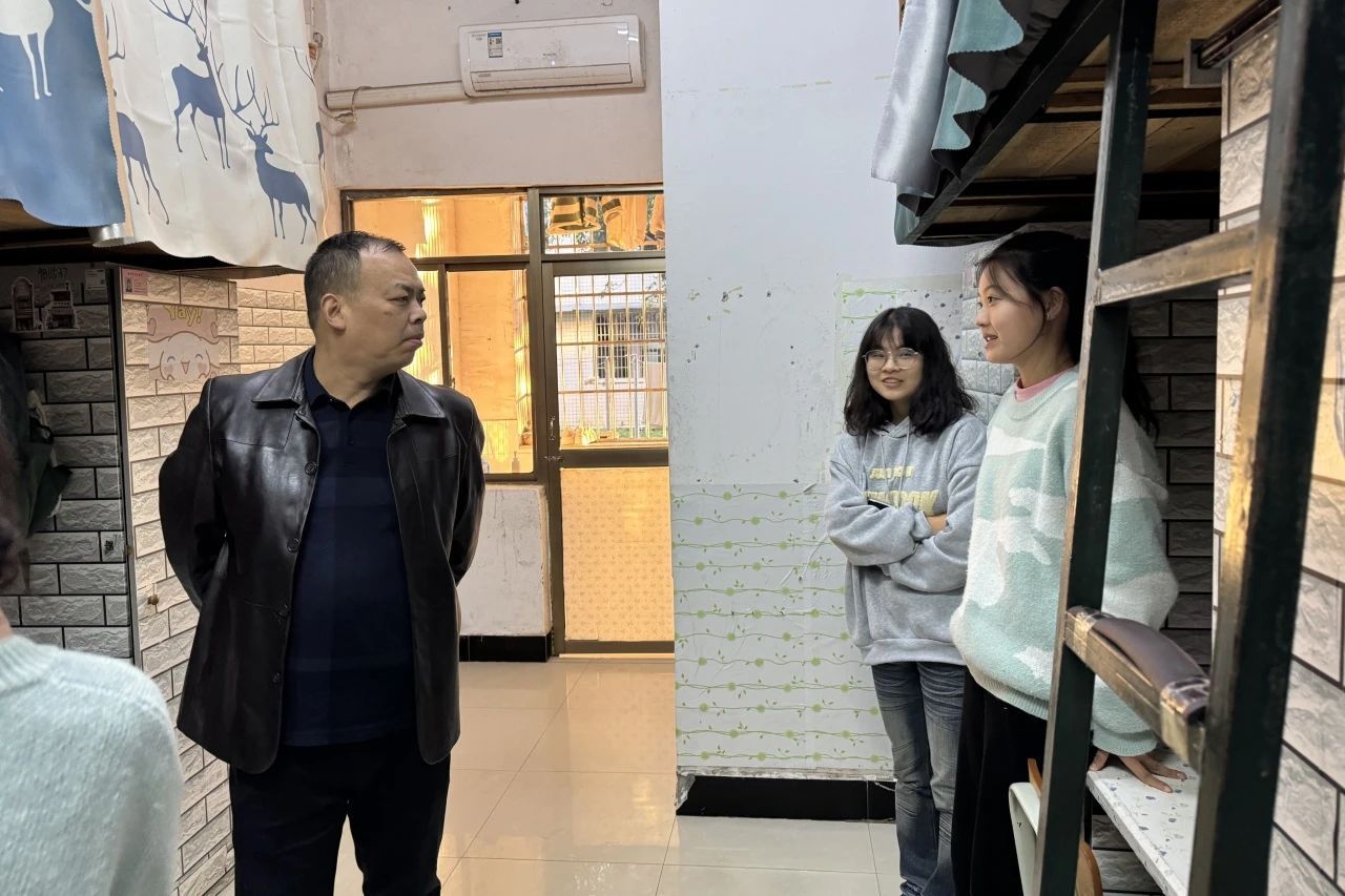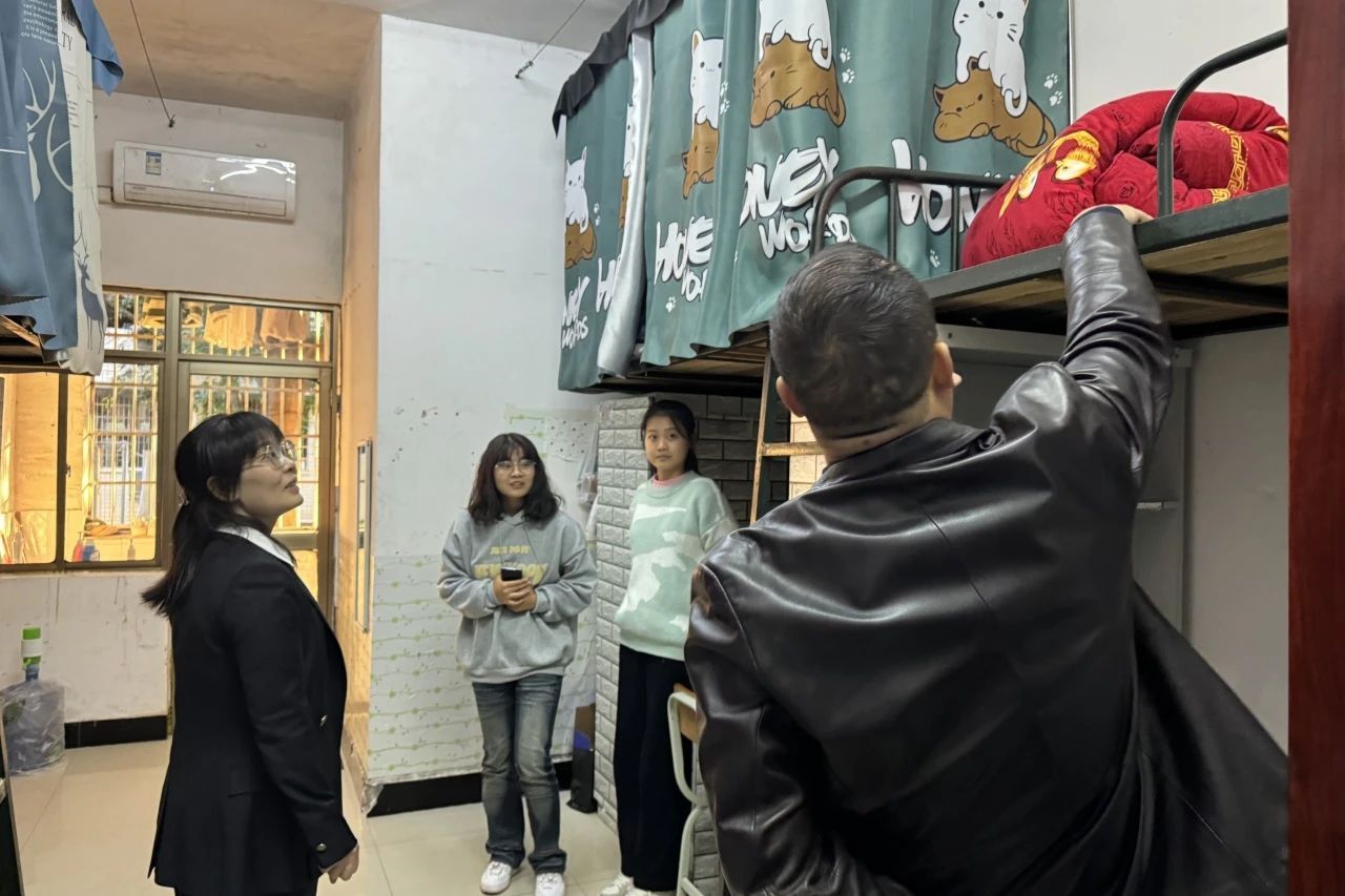 在考察过程中,凌书记和周书记与同学们进行了亲切交谈,深入了解同学们的学习状况,并对宿舍安全、文化建设等方面进行了细致检查。同时在检查过程中,对照生活安全、内务卫生、文化建设等指标体系要求,叮嘱同学们强化安全意识,美化内务和文化建设,以宿舍为抓手,凝聚集体智慧,真正把宿舍文化育人的成效落到实处。