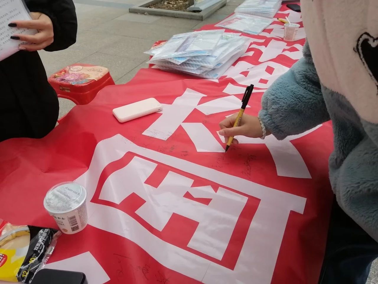 活动过程中,安全维稳部用通俗易懂的语言结合身边真实交通事故案例,为同学们讲解交通安全常识以及交通陋习带来的严重危害。同时,向同学们发放了交通安全宣传资料,让同学们观看了宣传展板以及邀请同学们在写有安全标语的横幅上签名留念。