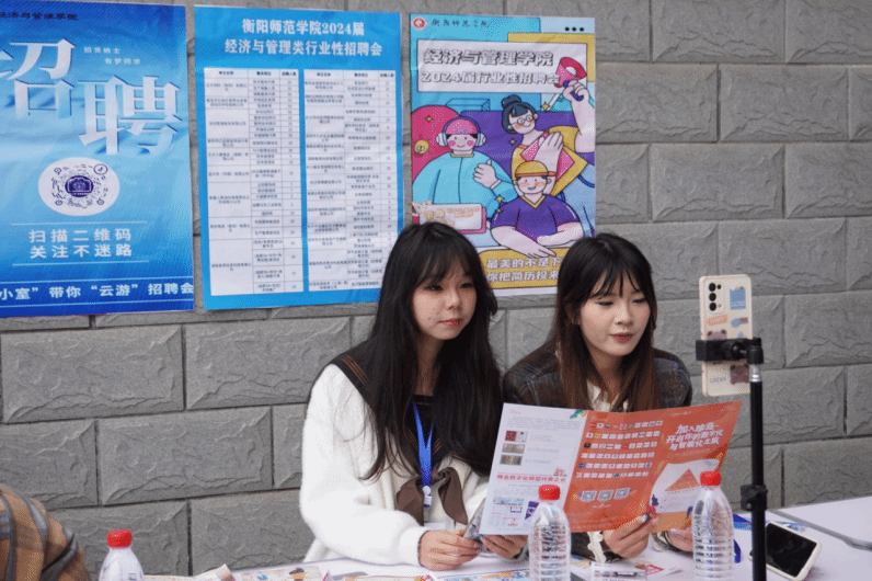 招聘会现场气氛热烈,求职者摩肩接踵,毕业生带着精心制作的简历,积极主动与意向单位进行沟通。各用人单位也通过宣传册,详细的向毕业生介绍企业概况、招聘岗位的具体情况等,双方交流热切,也吸引了大批低年级员工前来观摩学习,为以后求职面试积累经验。考虑到部分毕业生未在校,公司开通“衡小室”直播平台,在线介绍用人单位信息、岗位需求情况,直击招聘会现场,带领大家“云游”招聘会。