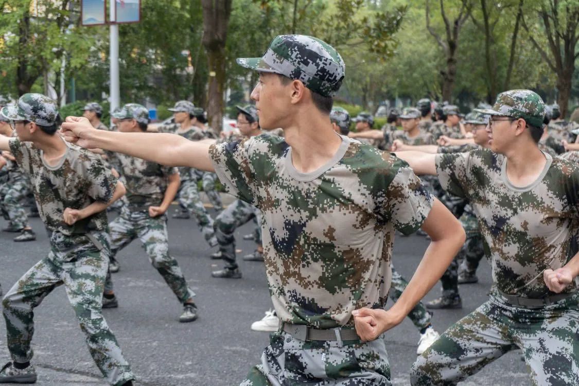 军体拳训练中,新生们不惧烈日,不断精进技艺,一拳一式将力量与速度的充分结合,伴随着响亮的呼喝声,彰显出青春的活力与激情。
