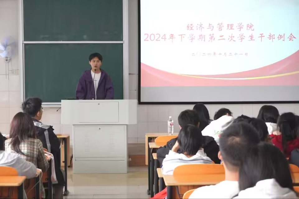 会议伊始,执行主席赵敏哲对所带部门近期完成的工作进行工作汇报。由分团委副书记曾令阳反映各班请假问题和讲述校运会培训工作注意事项,并计划性地安排了各部门的相关工作。随后执行主席杨闰对近期主席团收到各部门的问题进行反映,对班干部及时转达通知、部门及时上报活动等工作提出一些要求。