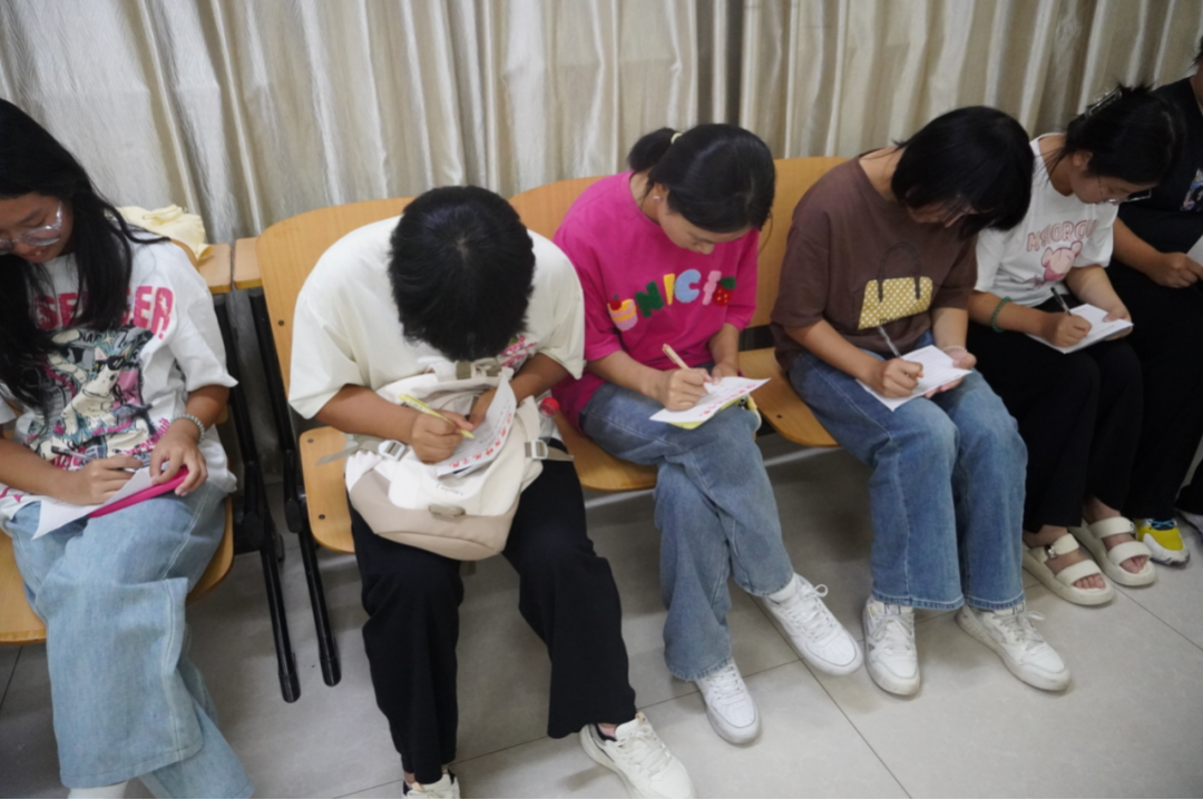 历经充满挑战与趣味的“海龟汤”和“一块五毛”游戏后,本次活动的压轴环节——“祝福交响”华丽启幕。大家纷纷在可爱的便签条上写下对自己及同窗在未来四年老员工涯中的诚挚祝福,为本次适应性活动画上了完美的句点。“天天开心”,这简短而温馨的四个字,不仅承载着许多学子对老员工活最朴素却真挚的愿景,更透露出他们对未来的深切期许与美好憧憬。