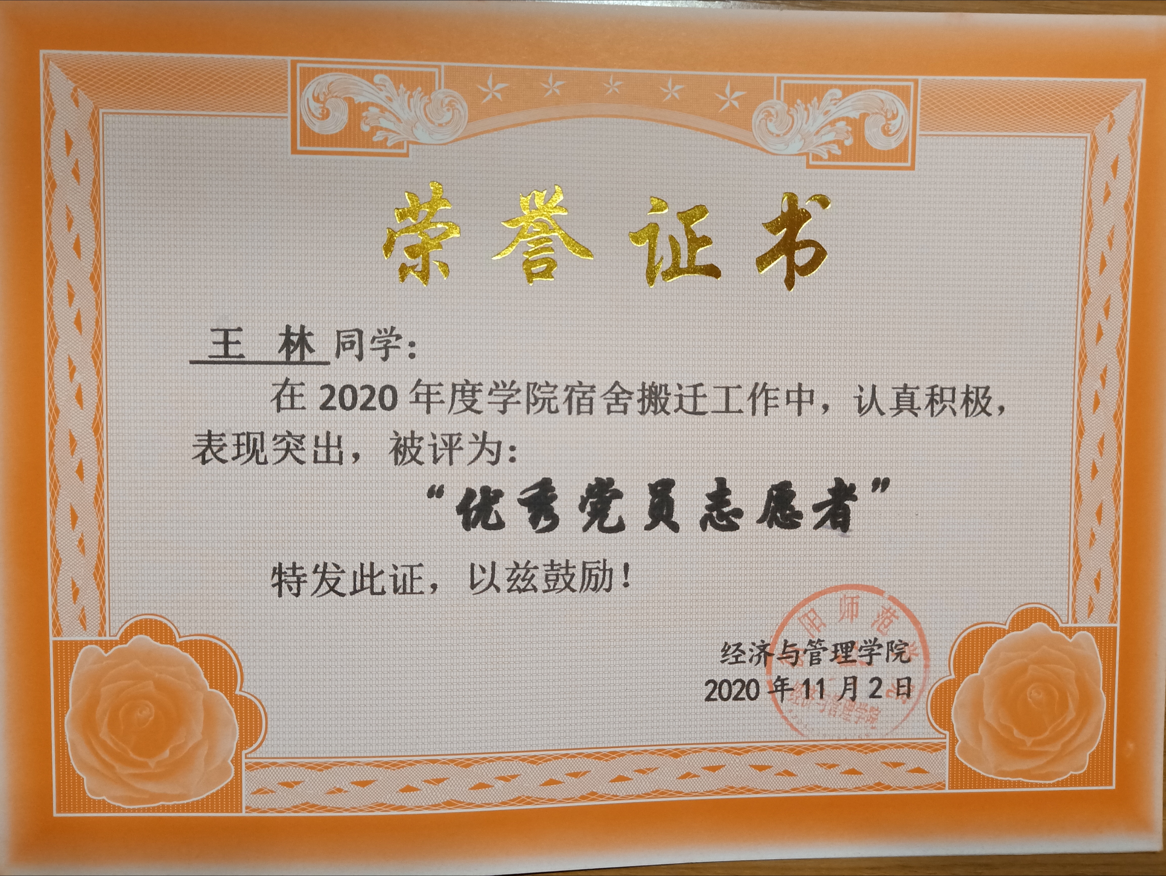 虽出生于平凡且普通的家庭,但相信自己是平凡却不平庸的人,从未放弃对生活的热爱,即使家庭条件不优越,也从未对生活产生自卑。努力学习,尽职尽责。高考结束后,争做模范榜样,凭借自身的努力获得地方教育局、政府的奖励基金数千元,能够从各方面严格要求自己,注重综合素质的提高,在思想、生活、学习、工作等各方面都不断提升自我。