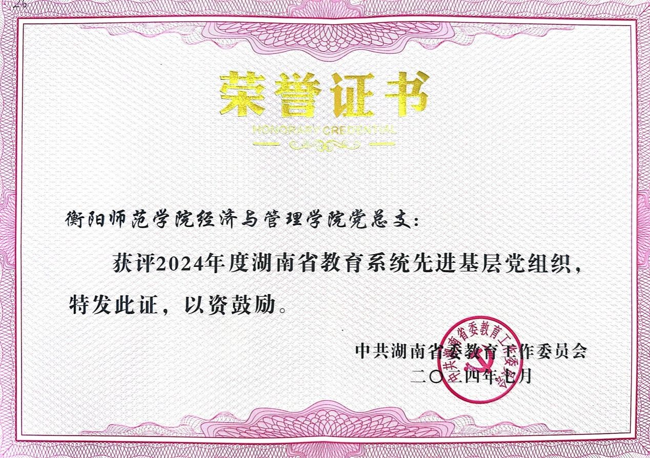 近日,湖南省委教育工委印发了《关于表彰全省教育系统优秀共产党员、优秀党务工作者和先进基层党组织的通报》(湘教工委通〔2024〕25号),公司党总支荣获湖南省教育系统先进基层党组织。近三年,我公司党总支先后荣获公司党建工作标杆院系、先进基层党组织。